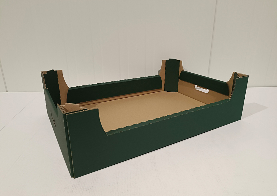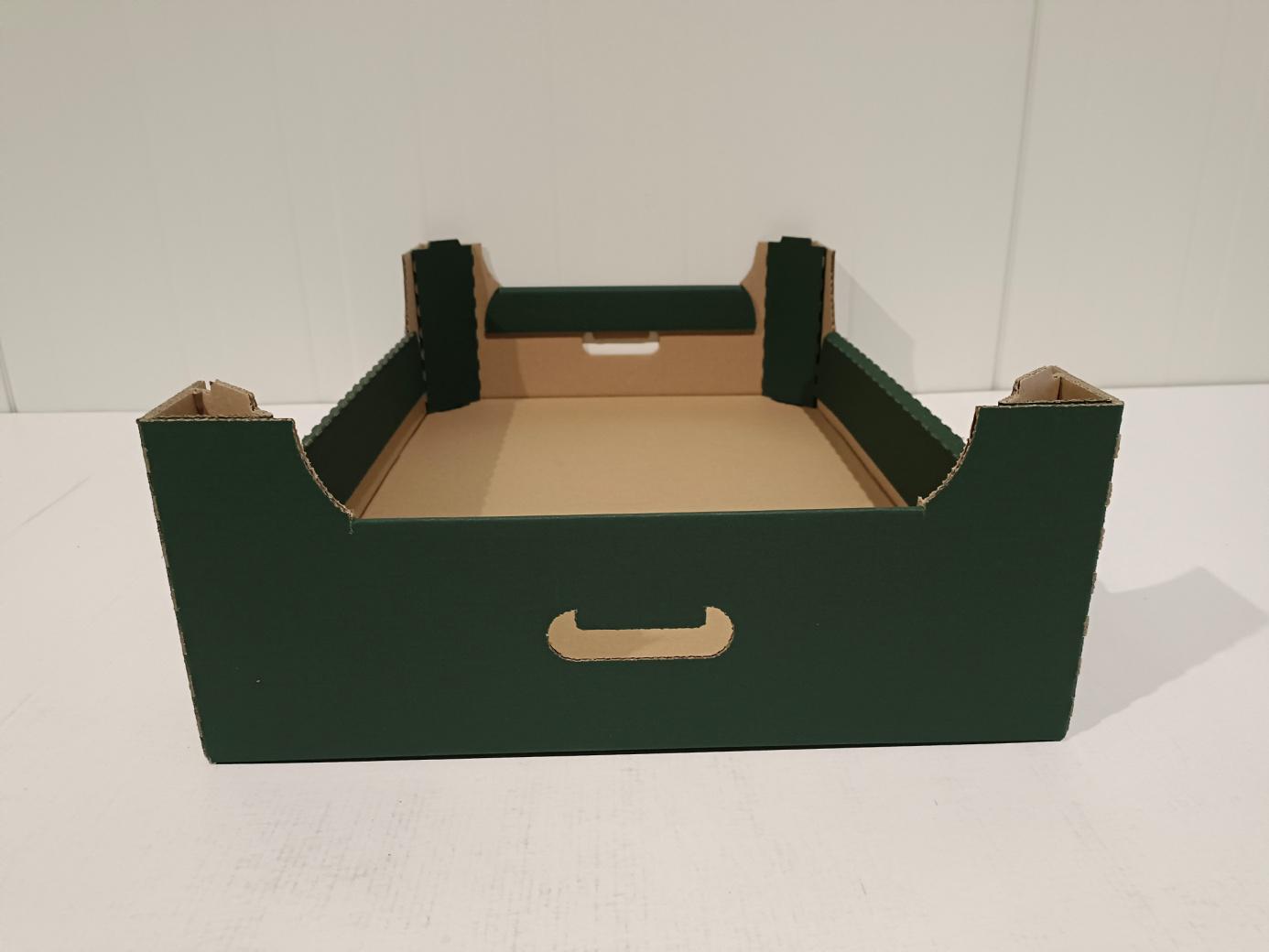 Wytrzymałe i funkcjonalne opakowanie z tektury falistej, wyposażone w wzmocnione narożniki, które zwiększają stabilność i odporność kartonu na odkształcenia w trakcie transportu. Konstrukcja z narożnikami zapewnia doskonałą ochronę zawartości oraz umożliwia łatwe piętrowanie opakowań, co przekłada się na bezpieczeństwo i wygodę w magazynowaniu oraz logistyce.